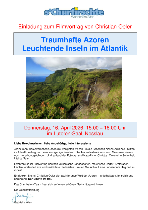Entdecken Sie mit Christian Oeler die faszinierende Welt der Azoren – unterhaltsam, lehrreich und berührend. Der Eintritt ist frei.